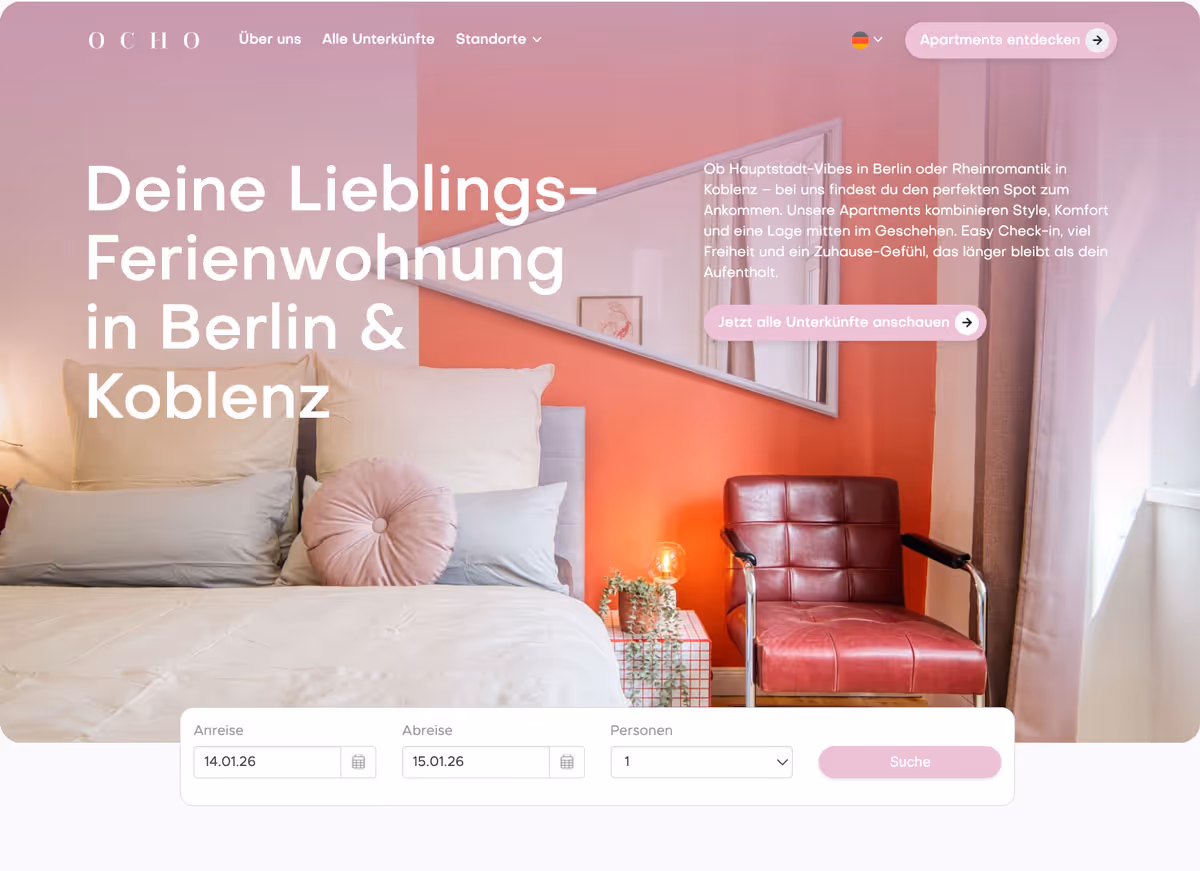 Die Buchungsstrecke von Smoobu kann entweder eigenständig eingebunden oder in bestehende Websites integriert werden. In der Praxis setzen viele Gastgeber dabei auf spezialisierte Anbieter, die sich auf performante Direktbuchungsseiten mit Smoobu-Anbindung konzentrieren. Ein Beispiel dafür ist Gastflow, die Websites mit klarer Nutzerführung, Fokus auf Conversion und direkter Smoobu-Integration umsetzen. So wird das Smoobu-Buchungssystem technisch sauber eingebunden, ohne dass Gastgeber sich selbst um Aufbau, Struktur oder Optimierung der Website kümmern müssen.